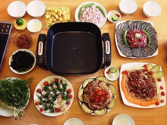 là món được ưa thích vào những ngày thời tiết oi bức. Ngoài việc cung cấp đầy đủ chất dinh dưỡng từ tôm, thịt, rau, tinh bột, món ăn còn không có dầu mỡ nên không gây cảm giác ngán, mang lại cảm giác ngon miệng cho người dùng. Món ăn đơn giản, dễ làm, dễ ăn, rất phù hợp cho những ngày nghỉ lễ tụ tập bạn bè. Ảnh: Quà ngõ nhỏ.Lẩu là món ăn không thể thiếu cho những dịp nghỉ lễ của gia đình. Những nguyên liệu cũng như cách chế biến món lẩu khá đơn giản, vừa chống ngấy lại rất ngon và lạ miệng. Ảnh: Quà ngõ nhỏ.Làm lẩu nướng rất đơn giản, không mất nhiều thời gian để ninh nước dùng như ăn lẩu nước, chỉ cần bạn lựa chọn những thực phẩm tươi ngon, khéo léo tẩm ướp gia vị sao cho vừa miệng thì bạn sẽ có một bữa ăn vô cùng hấp dẫn. Lẩu nướng là một loại hình ăn uống khá mới mẻ và sáng tạo phù hợp cho dịp nghỉ lễ tụ họp đông đủ. Ảnh: Toinayangi.